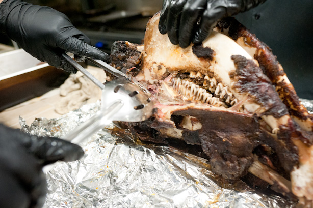 Saveur’s recipe calls for a “dark chocolate” roux, which took a couple tries, but it’s reminiscent of the style of étouffée I grew to love as a kid, so it was worth it. The recipe really needs no improvements; instead of posting a tweaked version, here’s the stock I made from the crawfish shells.